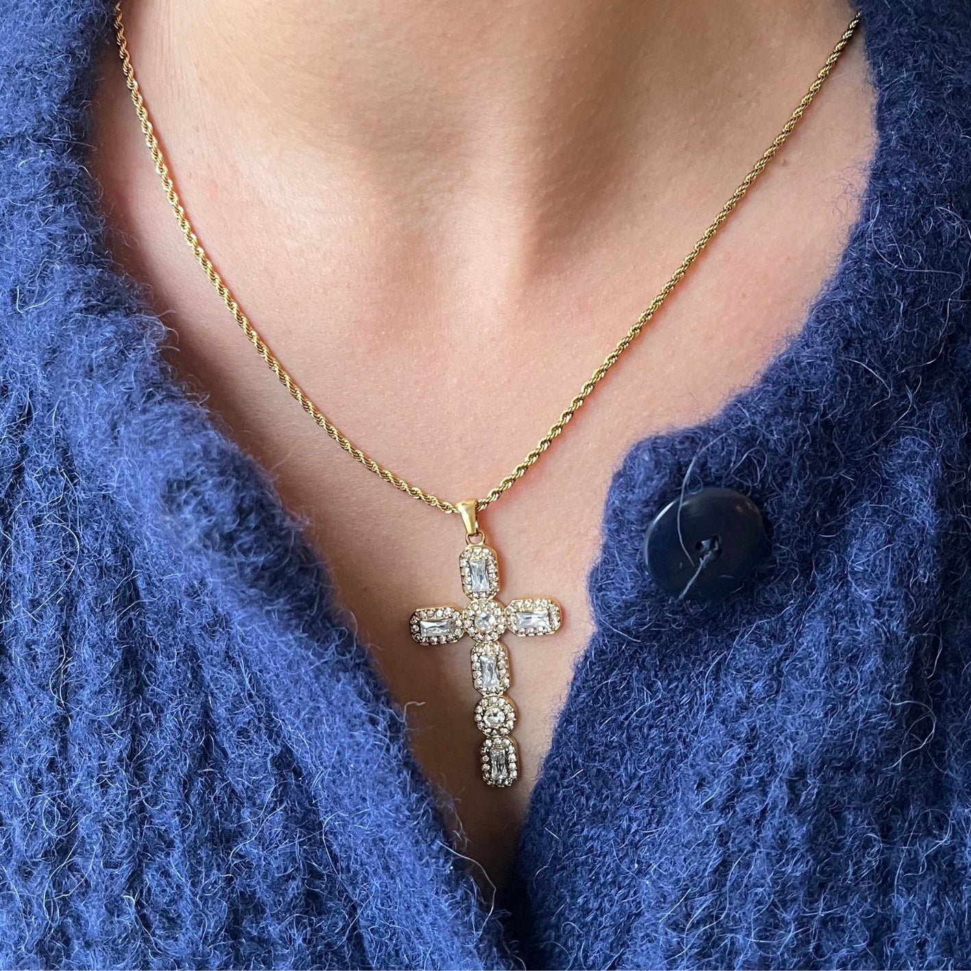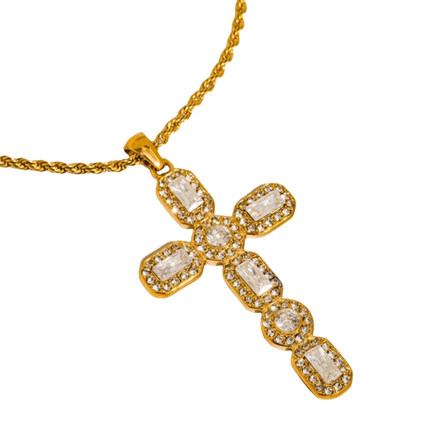 18K Gold Non-Tarnish Cubic Zirconia Cross Necklace
